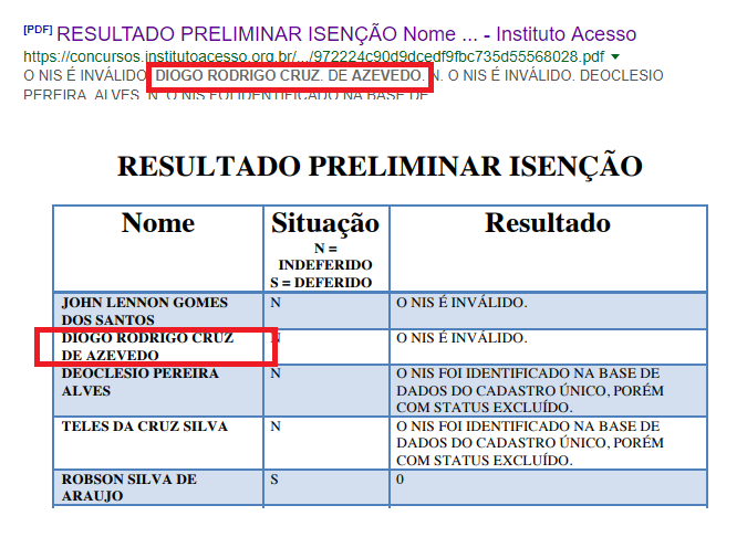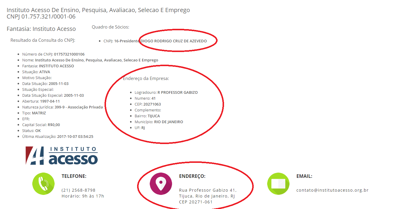 O empresário Diogo Rodrigo Cruz de Azevedo, dono do Instituto Acesso, aparece inscrito e apto para concorrer a diversas vagas oferecidas pelo concurso. – “É um absurdo, uma verdadeira falta de respeito com a população. Como pode, o dono da empresa contratada pela prefeitura, responsável pela realização do concurso público, aparecer inscrito em diversas vagas e apto a fazer as respectivas provas? Eles brincam com o sonho das pessoas. O sonho de passar em um concurso público para garantir uma estabilidade financeira e ajudar no sustento de sua família! Isso é uma grande covardia!”, arma Poubel indignado com a situação. Leia matéria na íntegra publicada pelo portal LSM.