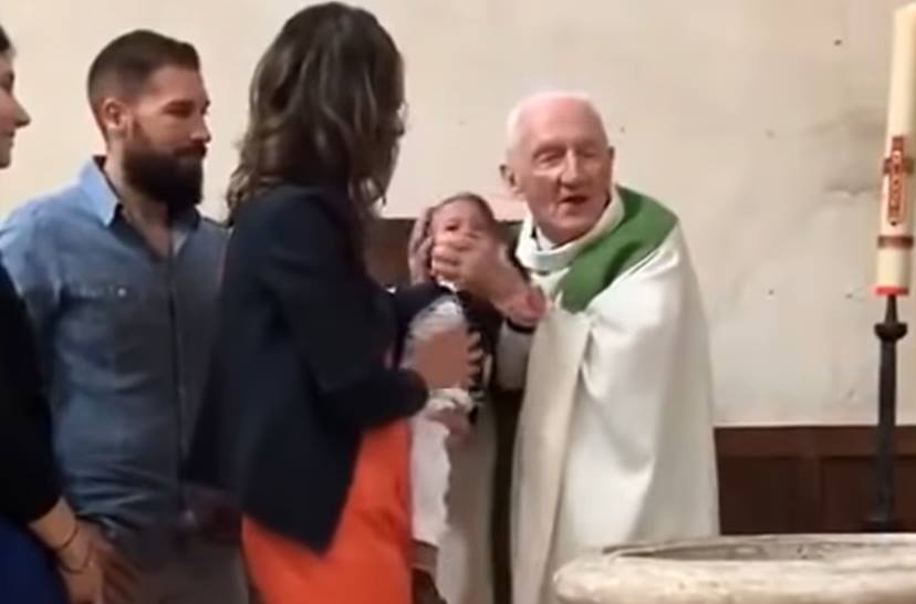 “Durante a missa, tudo correu bem, mas no momento do batismo, o bebê começou a chorar. Ele tem dois anos e meio, não é uma boa idade para batizar, nesta idade eles são grandinhos, então sabem que algo está acontecendo, mas ainda são pequenos demais para entender e perceber. Lá, a criança estava gritando muito e eu tive que virar a cabeça para despejar a água. Eu disse a ele ‘acalme-se’, mas ele não estava se acalmando. Tentei segurá-lo perto, contra mim para tentar acalmá-lo”, justificou o padre.