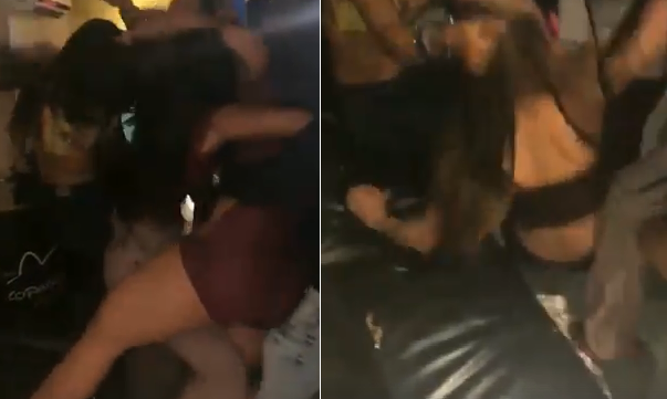 Sem se preocupar com o barraco, a mulher que descobriu a identidade da amante do marido foi buscá-la e não teve piedade. O vídeo tem uma duração de quase um minuto, aproximadamente, até a chegada dos seguranças.
