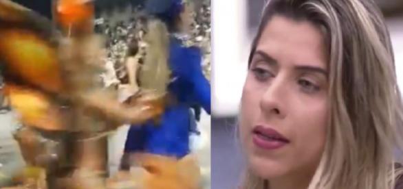Em vídeo que circula na internet, Tati, que é rainha da escola, e Renata, imperatriz da bateria, aparecem sambando fantasiadas. Em um momento, Renata empurra Tati, que revida.
