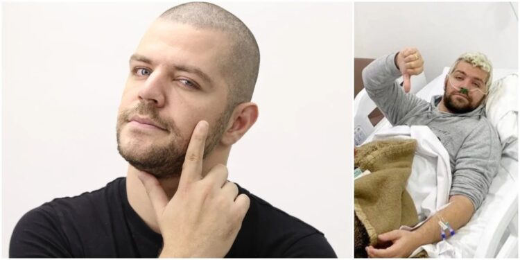 “Eu já estava meio mal já, fui gravar o programa do Faro ontem, tive que sair no meio da gravação, fiquei bem mal, vomitando, comecei a ficar preocupado, comecei a vomitar sangue”, relatou nas redes sociais.