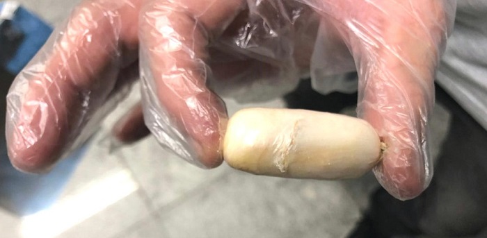 Ao fazerem a abordagem, os policiais sentiram forte odor de fezes. Após uma revista íntima, foram localizadas três cápsulas contendo cocaína e uma esfera de skunk. Em depoimento, ela confessou ter recebido a quantia de R$ 1 mil para fazer o transporte da droga.