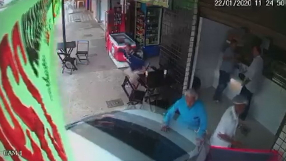 Pelo vídeo, é possível ver que o idoso saia de uma lanchonete, quando o veículo invadiu o estabelecimento e o atingiu. Com o impacto, seu José, que trabalha na região consertando relógios, foi arremessado e ficou caído no chão.
