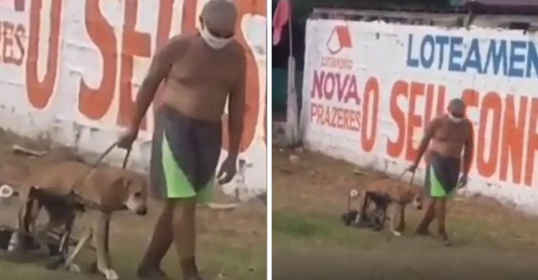 RECIFE-PE| Todos os dias pela manhã, um idoso sai para passear com seu cachorrinho de estimação, que precisa de um carrinho de rodas para se locomover nas ruas de Recife (PE). Mesmo com a deficiência física, o cão não deixa de passear um só dia, já que seu dono faz questão de levá-la para caminhadas matinais sem se importar com a lentidão que o animal anda.