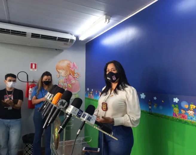 Durante coletiva no prédio da Depca, na zona centro-sul de Manaus, a delegada Joyce Coelho, titular da Especializada, conta que moradores acionaram equipes da Secretaria de Estado de Justiça e Direitos Humanos (Sejusc), que faziam ações no local, e denunciaram os crimes praticados pelo idoso.