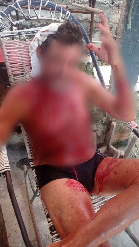 O idoso foi jogado no chão e machucou a cabeça gravemente, ficando com o corpo todo ensanguentado. De acordo com a família, não é a primeira vez que Antônio agride o pai.