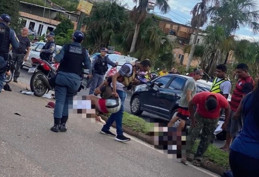 MANACAPURU – Um idoso de 79 anos morreu e um homem ficou gravemente ferido após um choque entre motos em Manacapuru, no fim da tarde de ontem (21). De acordo com testemunhas o idoso fazia o retorno quando o acidente ocorreu. Uma mulher que estava de carona na moto do ferido também foi arremessada e está internada com hospital Lázaro Reis.