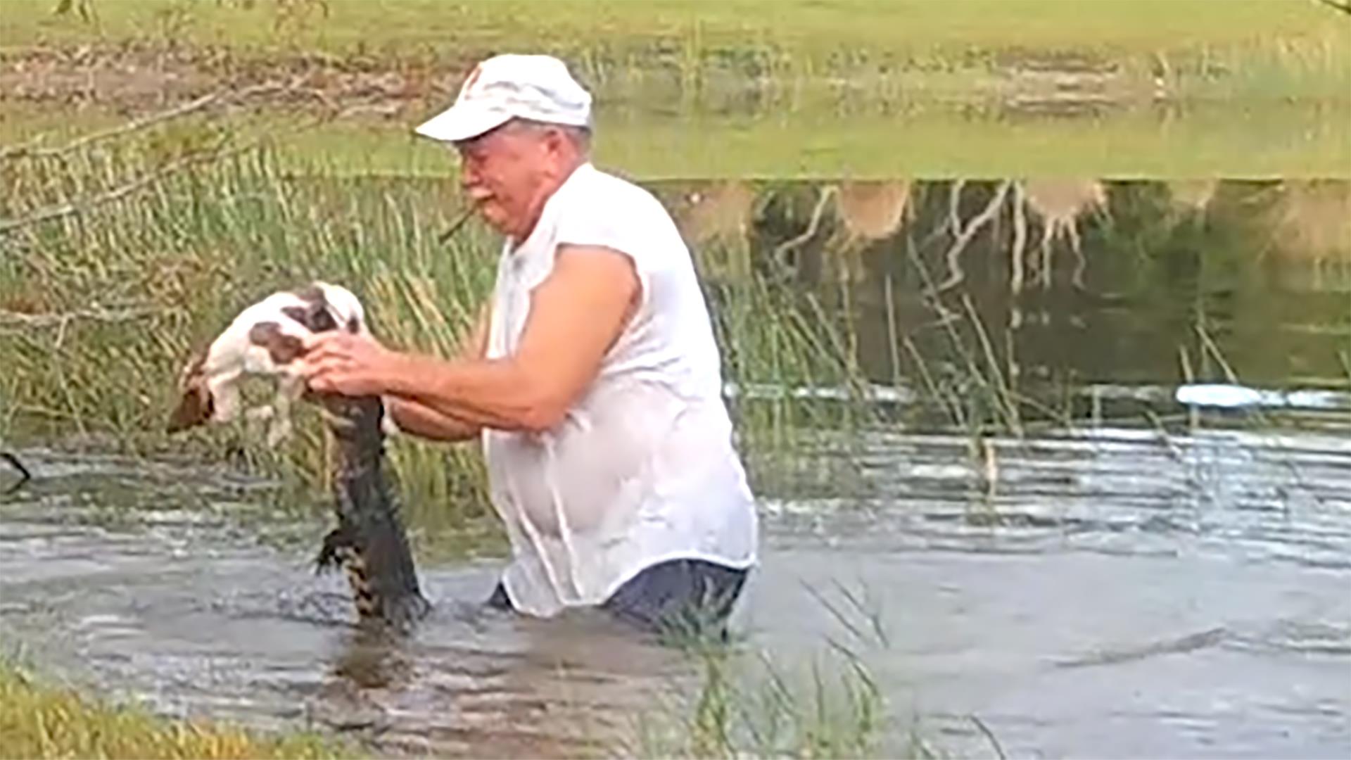 FLÓRIDA | Um idoso, morador da Flórida (EUA), arriscou a própria vida para salvar um filhote de cachorro que havia sido abocanhado por um mini jacaré.