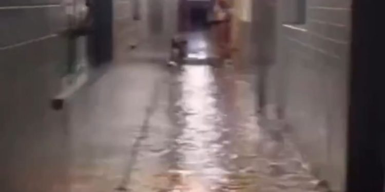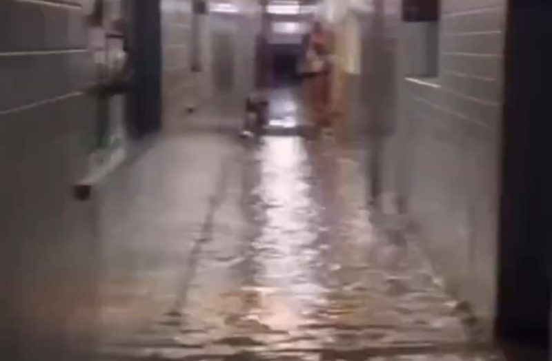 Nas redes sociais, um vídeo que mostra o local cheio de água começou a circular. As salas de aula da unidade também foram invadidas.