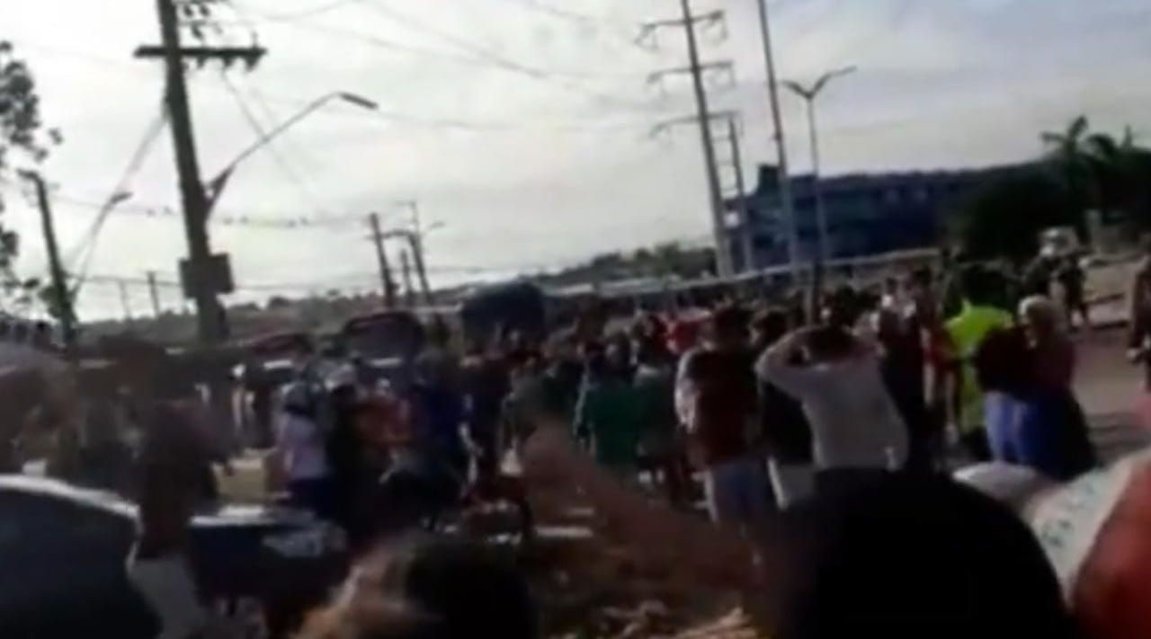 MANAUS–AM| Na manhã desta terça-feira (26), feirantes da Bola do Produtor da Zona Leste de Manaus, fizeram um protesto contra a fiscalização policial, em cumprimento do decreto estabelecido pelo Governo do Amazonas. Os trabalhadores que não concordam com o fechamento do comércio na região, se aglomeraram na frente do local, construíram uma barreira com madeiras e pneus, e foram para o meio da via exigindo que as medidas para frear o avanço da covid-19 no estado, sejam flexibilizadas.