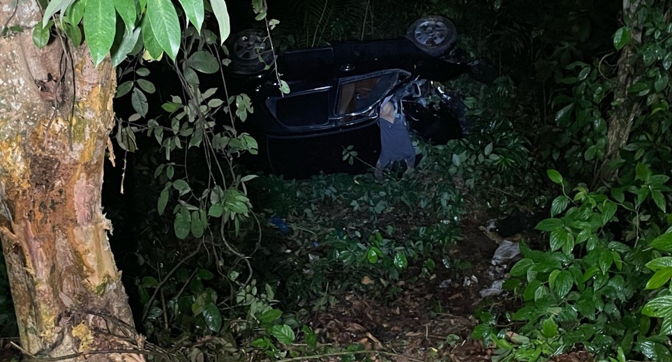 O motorista perdeu o controle do carro e foi parcialmente para fora do carro, com metade do corpo para dentro e metade do corpo para fora do veículo. Ele estava sem o cinto de segurança.