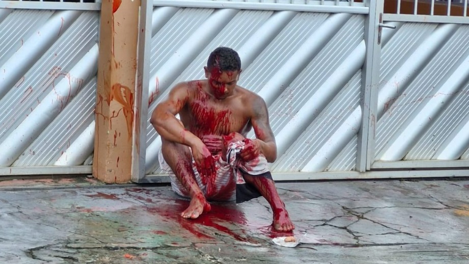 AMAZONAS – Um suspeito de roubo ainda não identificado teve o dedo rotado por terçado em Manacapuru, e acabou viralizando, sentado na calçada, coberto de sangue.