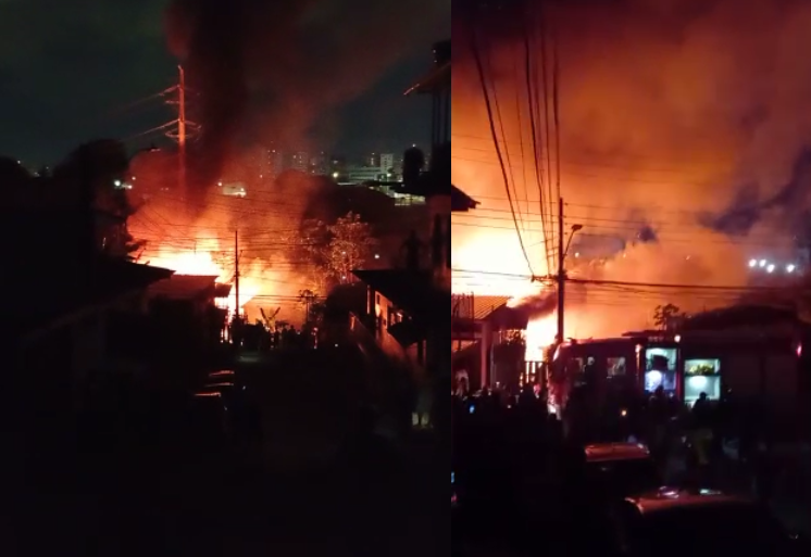 MANAUS (AM) – Mais de dez casas foram destruídas completamente na noite desta terça-feira (26), na rua Cachoeira, no bairro São Jorge, Zona Oeste de Manaus. Uma vela acesa que caiu teria ocasionando um incêndio de grandes proporções.