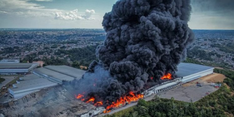 MANAUS – O Corpo de Bombeiros segue no local do incêndio nesta quarta-feira (6), na empresa Effa Motors e Valflm da Amazônia, localizadas no Distrito Industrial 2, Zona Leste de Manaus. Apesar do trabalho incansável, já são mais de 20 horas de fogo no local.