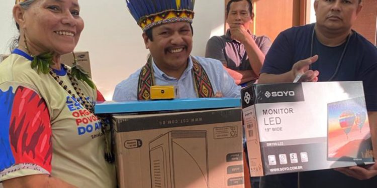 No total, foram entregues 20 computadores para atividades administrativas indígenas, fortalecendo o desenvolvimento técnico de cada entidade e inserindo-se na era tecnológica.