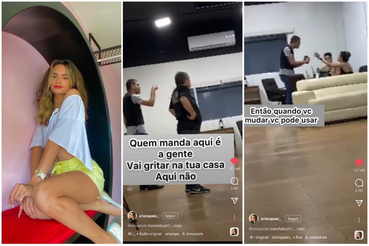 “Teu documento tá de [nome] Ariana? Então quando você mudar, você pode usar [o banheiro]. Aqui a regra quem faz é a gente. Não vai ter mais gravação”, diz o produtor, identificado apenas por nome ‘Franklin’.