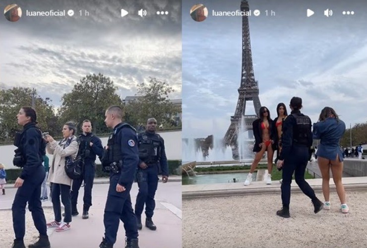 As tiktokers tentavam tirar fotos só de biquíni em frente à Torre Eiffel, um dos principais pontos turísticos do país, quando foram abordadas por policiais na frente de outros turistas.