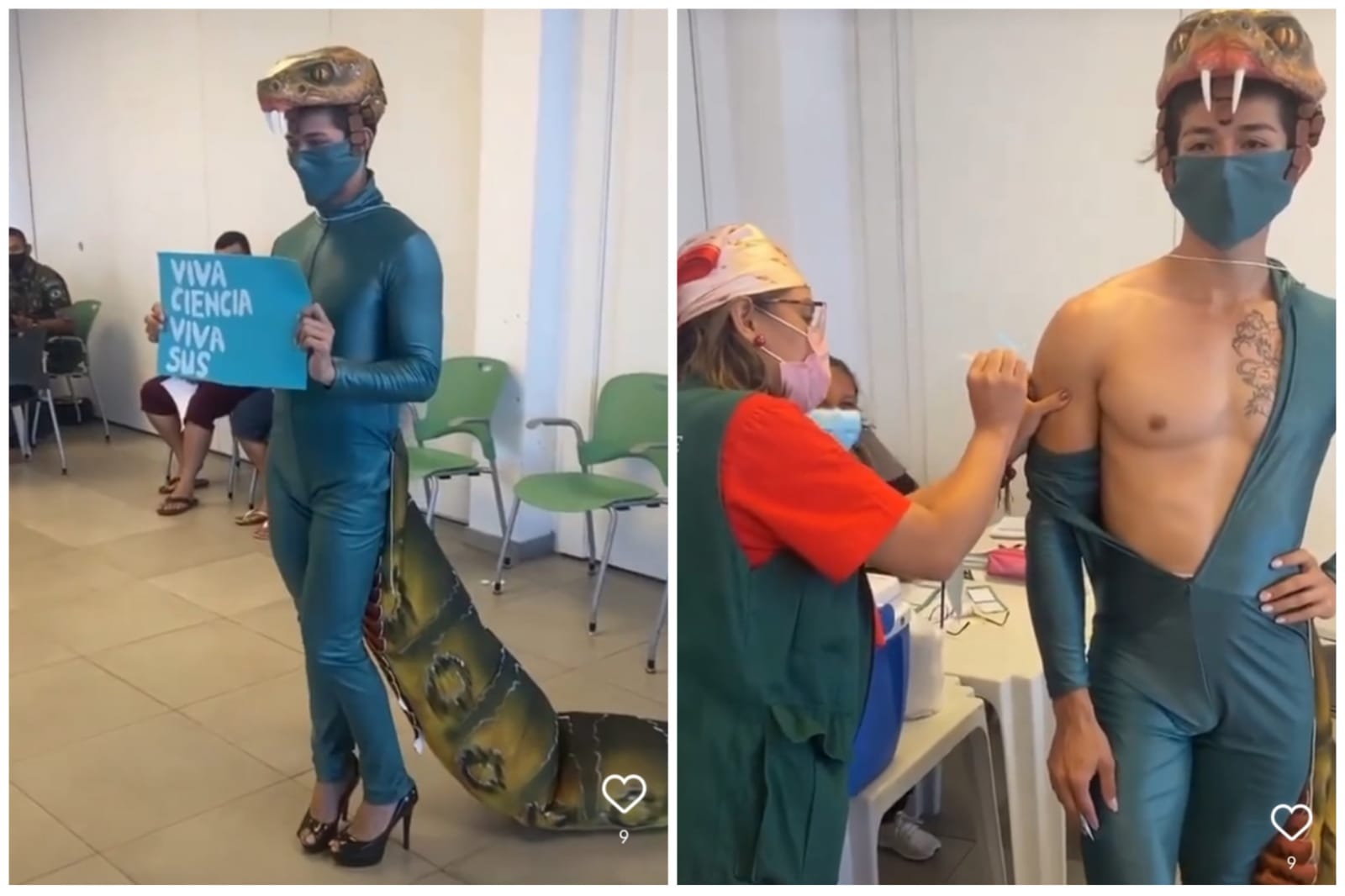 MANAUS – AM | O digital influencer Klinger Rodrigues chamou a atenção nas redes sociais ao se vestir de “cobra” para receber a vacina contra a Covid-19, em Manaus. O momento foi publicado no Instagram do rapaz. (Veja o vídeo no final da matéria)