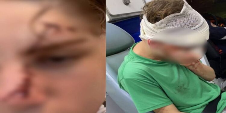 Um influenciador digital, de apenas 15 anos, ficou gravemente ferido após ser atingido por uma garrafa dentro de um restaurante. O jovem ficou com o rosto desfigurado após a briga e precisou levar 30 pontos.