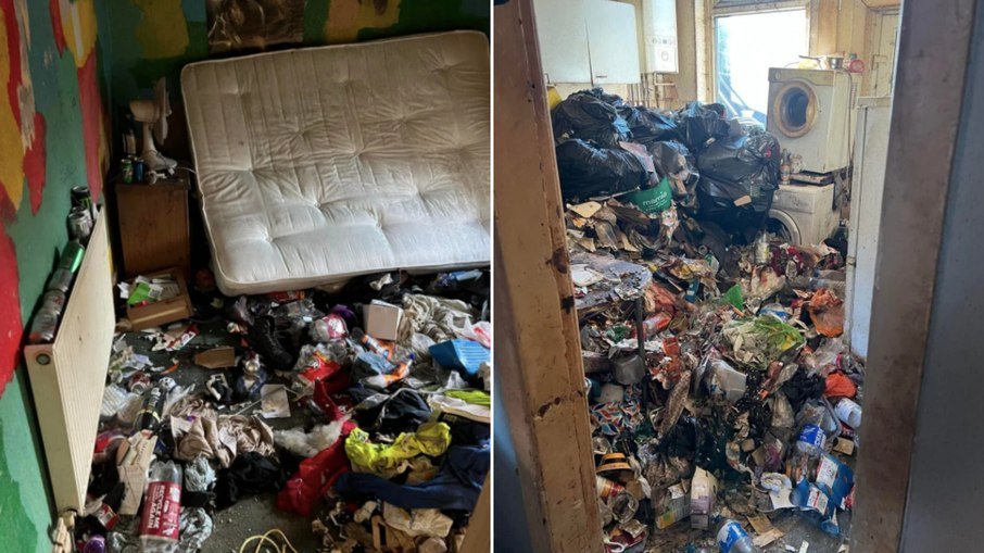Danny Hernon, de 54 anos, contou ao Metro UK que precisou ainda “cavar” entre os lixos acumulados que bloqueavam a porta dos fundos para poder entrar no local.