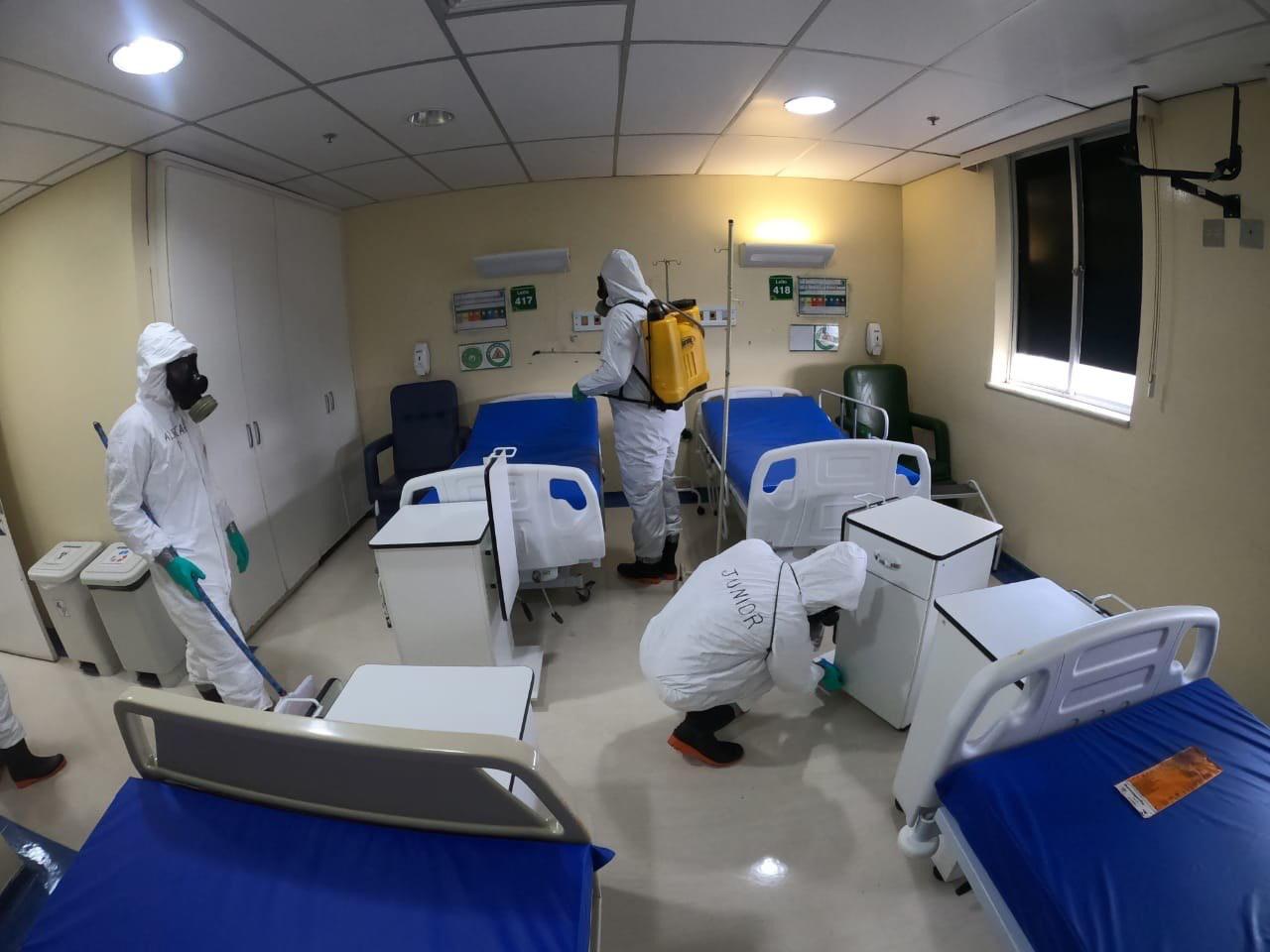 Cerca de 70 militares da Equipe de Resposta Nuclear, Biológica, Química e Radiológica (NBQR), do Comando do 9º Distrito Naval, desinfetaram corredores, portas, móveis e pisos da Urgência da FCecon e do 4º andar da Fundação, que concentram os pacientes internados em situações de urgência e emergência e que podem apresentar sintomas da Covid-19.