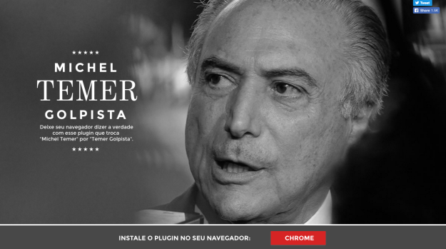 Em resposta, não demorou muito para que usuários criassem uma extensão para o Google Chrome que altera todas as menções ao nome de “Michel Temer” para “Temer Golpista”.