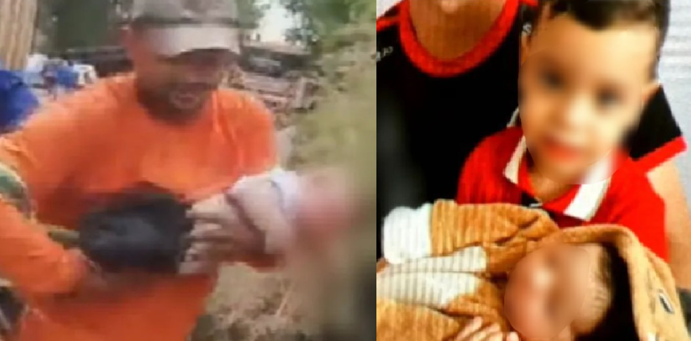 Um vídeo mostra Luiz sendo resgatado por um homem. O bebezinho chorava muito.