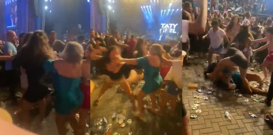 A briga foi muito próximo do palco e Taty parou de cantar e teve que chamar os seguranças. Um “buraco” no meio das pessoas se formou enquanto a mulherada arrancava os cabelos, se rolava no chão e dava tapão uma na outra.