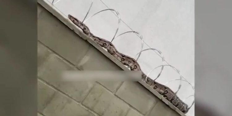 MANAUS-AM| Durante a manhã desta segunda-feira (20), um cinegrafista amador registrou a aparição de uma cobra do tipo jiboia, caminhando por um muro do Condomínio Conquista, localizado na avenida Torquato Tapajós.