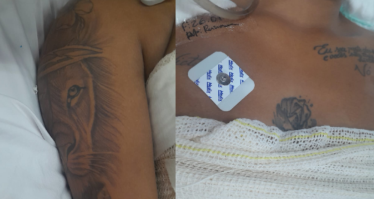 A paciente não portava documentos de identificação no momento do ocorrido. Para auxiliar no reconhecimento, o hospital divulgou imagens da mulher, que possui tatuagens visíveis pelo corpo, características que podem ser fundamentais para sua identificação.