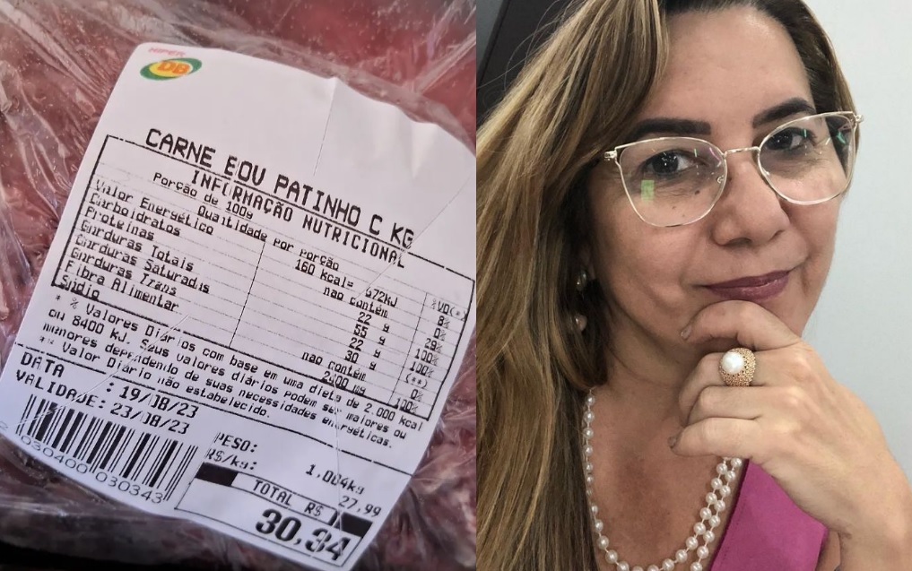 MANAUS, AM – A jornalista Cristina Magda fez uma denúncia contra o supermercado DB neste domingo, (20), após pagar R$ 30,34 por um pedaço de patinho estragado.