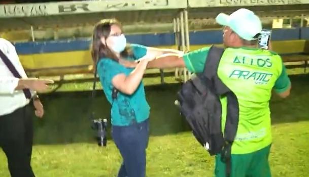 “Ele tomou o celular da minha mão e eu fui para cima dele tentando recuperar. Ele tentou me impedir, me afastando de lado. Por conta do cinegrafista ter chegado em cima, ele devolveu meu celular. A intenção dele era apagar o vídeo. Ainda tem a tentativa de obstruir o nosso trabalho”, disse a repórter ao Globo Esporte.
