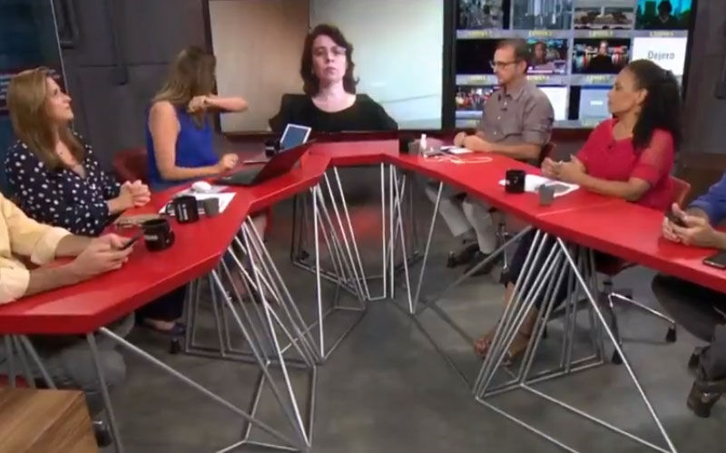 Depois de um problema na comunicação com Bianca, a correspondente conseguiu falar com os repórteres. “Melhoras para você [Maria Beltrão], antes de mais nada”, desejou.