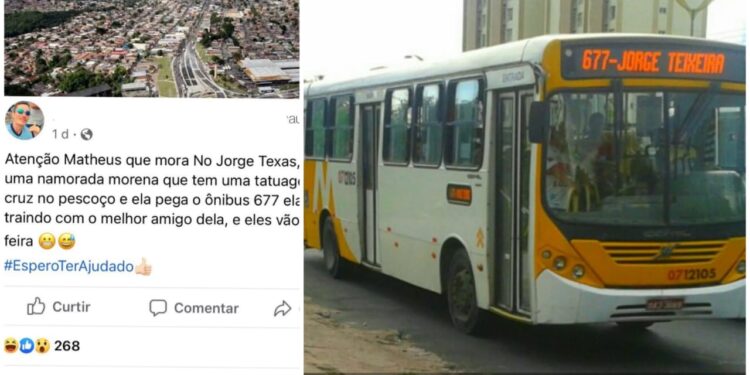 Daniel postou o trecho de uma conversa dentro do ônibus e dedurou a moça para muitos seguidores. “Atenção Matheus que mora no Jorge Texas, se você tem uma namorada morena, com uma tatuagem de cruz no pescoço e ela pega o 677, ela á te traindo com o melhor amigo dela”.