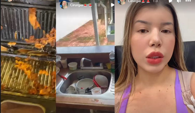 “Não trocaram nosso lençol em momento algum. Pensa, a gente operada, saindo muito sangue, não teve higiene, nada”, denunciou ela, que mostrou também a pia da casa cheia de louças para lavar e ainda uma sanduicheira com resto de queijo e toda engordurada.