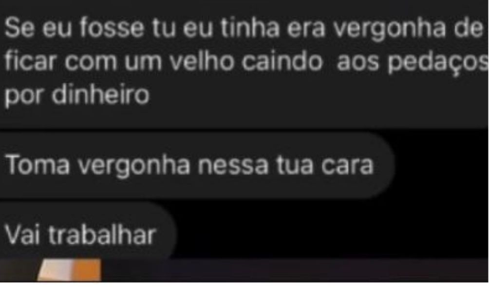 “Se eu fosse tu, teria vergonha de ter casado com um velho caindo aos pedaços, por dinheiro. Toma vergonha na cara e procura trabalhar”, estava escrita a mensagem.