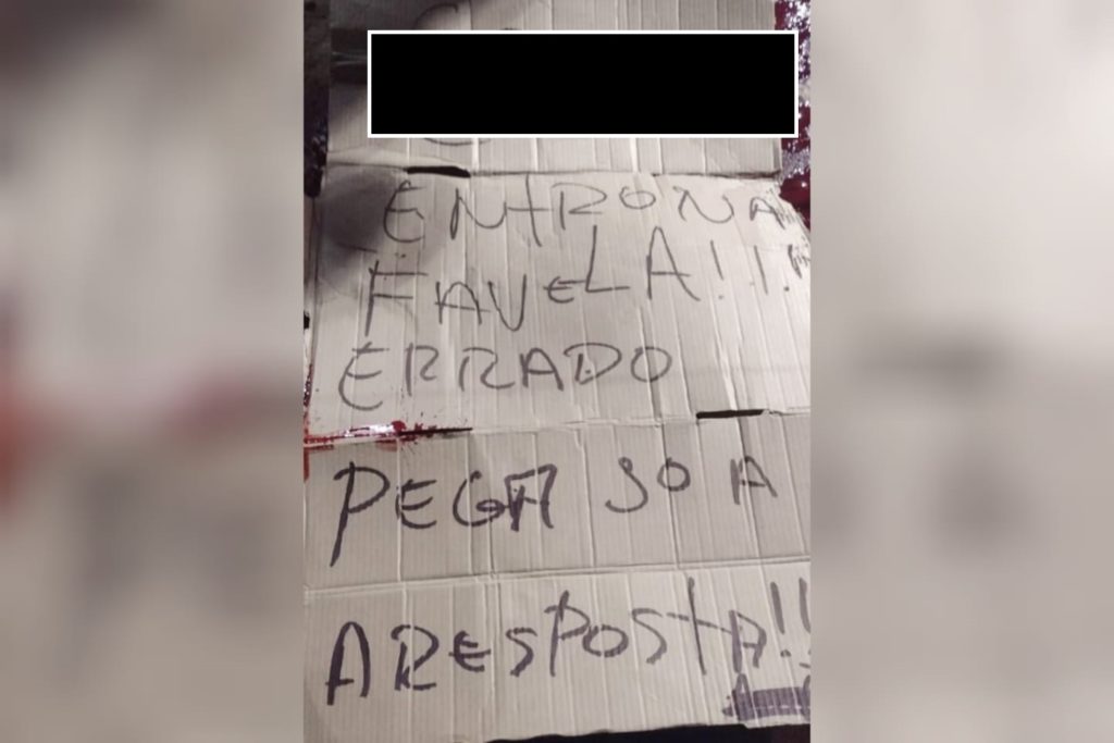 Os policias da 30ª Companhia Interativa Comunitária (Cicom) foram acionado por volta das 22h30 e encontraram o corpo coberto por um papelão escrito com a frase: “Entrou na favela errada. Pega só a resposta”