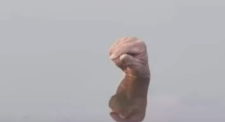 Moradores viram apenas o punho nesta segunda-feira e conseguiram fazer o resgate do jovem.