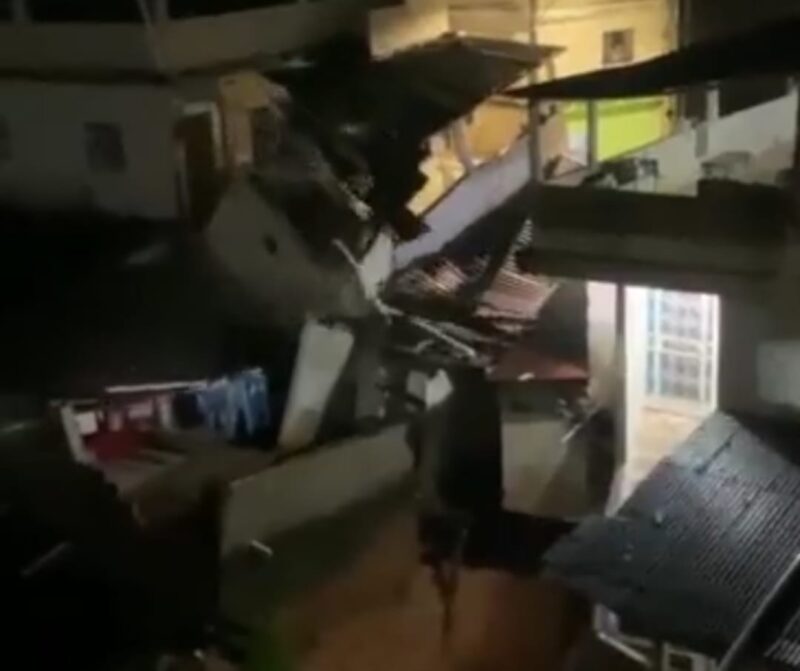 O jovem conseguiu salvar a própria vida pulando antes da residência desabar e por pouco ele não foi atingido pelos destroços. Nas imagens, é possível ver que a estrutura da residência vai à baixo em um deslizamento.