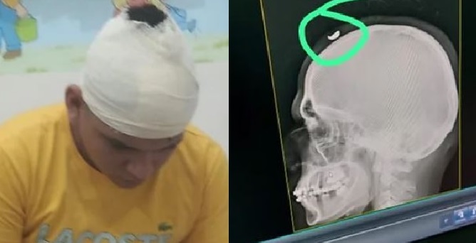 AMAZONAS – A população da cidade de Santa Isabel do Rio Negro foi surpreendida nesta terça-feira (14) por imagens de um jovem vítima de bala perdida na cidade. O projétil ficou preso no couro cabeludo dele, e a cebna viralizou nas redes sociais.