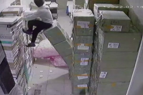 Mas uma segunda câmera mostra que não havia com que se preocupar. Após o acidente, um outro funcionário correu em direção ao rapaz, que conseguiu se equilibrar e aparentemente saiu ileso.