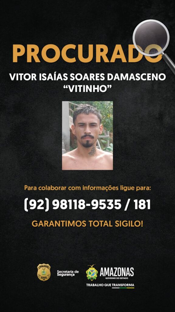 Duas pessoas identificadas como participantes do crime estão sendo procuradas: Jhon Erick Menezes de Araújo, vulgo ‘Macaquinho’ e Vitor Isaías Soares Damasceno, o ‘Vitinho’.