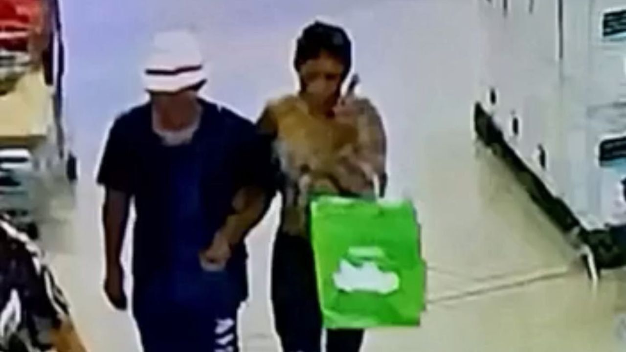 Usando uma sacola verde, os seguranças viram Carla colocando alguns produtos dentro e enchendo um carrinho de supermercado com outros objetos.