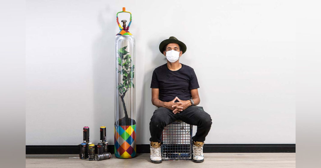 O arista, que lançou recentemente o Instituto Kobra, acredita que a arte é um instrumento de transformação. E foi exatamente o que ele fez: transformou um cilindro de oxigênio em desuso em uma peça única!