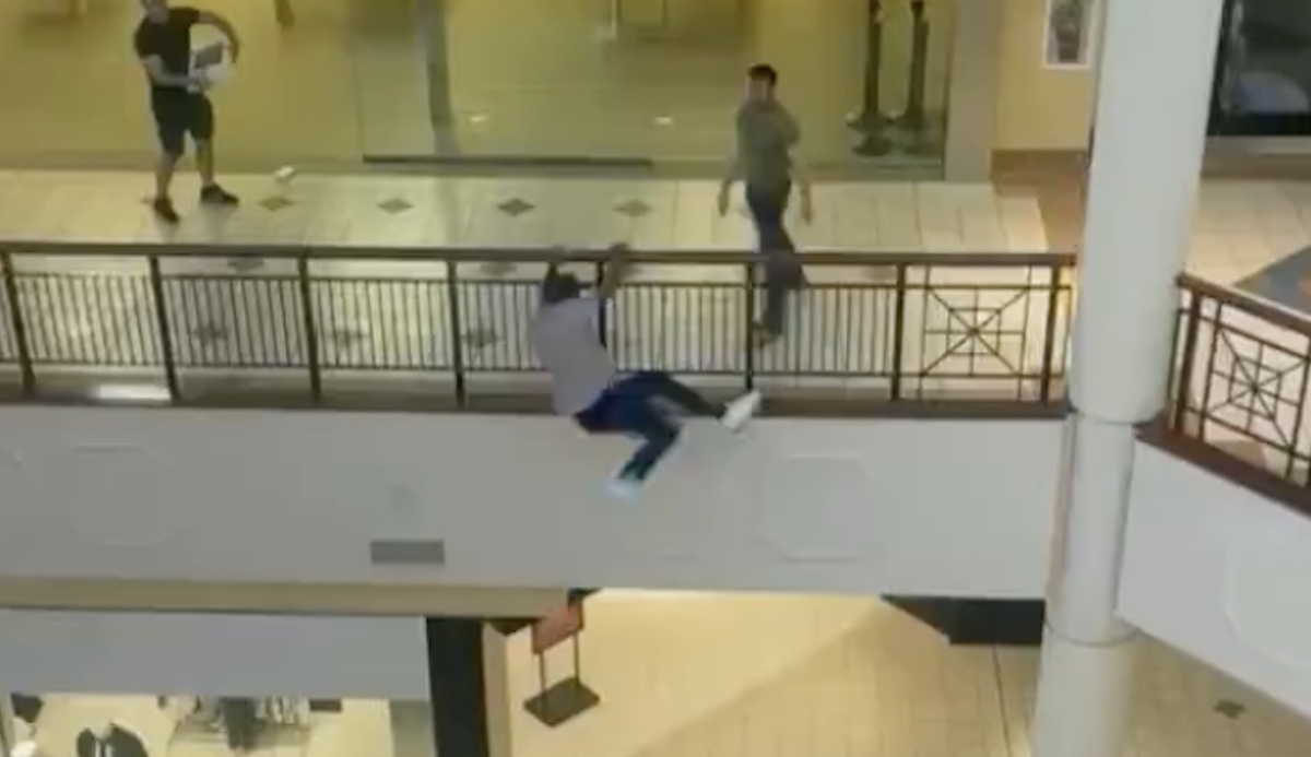 MUNDO – Um homem suspeito de roubo em uma loja da Apple se deu mal. Um vídeo mostra o homem pulando o segundo andar do shopping e se quebrando todinho. A cena teria acontecido nos Estados Unidos.