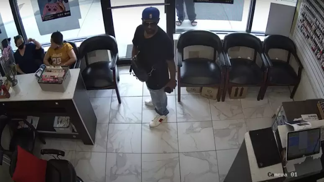 Nas imagens, o homem entram no espaço de manicure, aos gritos ele exige que todos lhe entreguem os pertences, mas é ignorado.