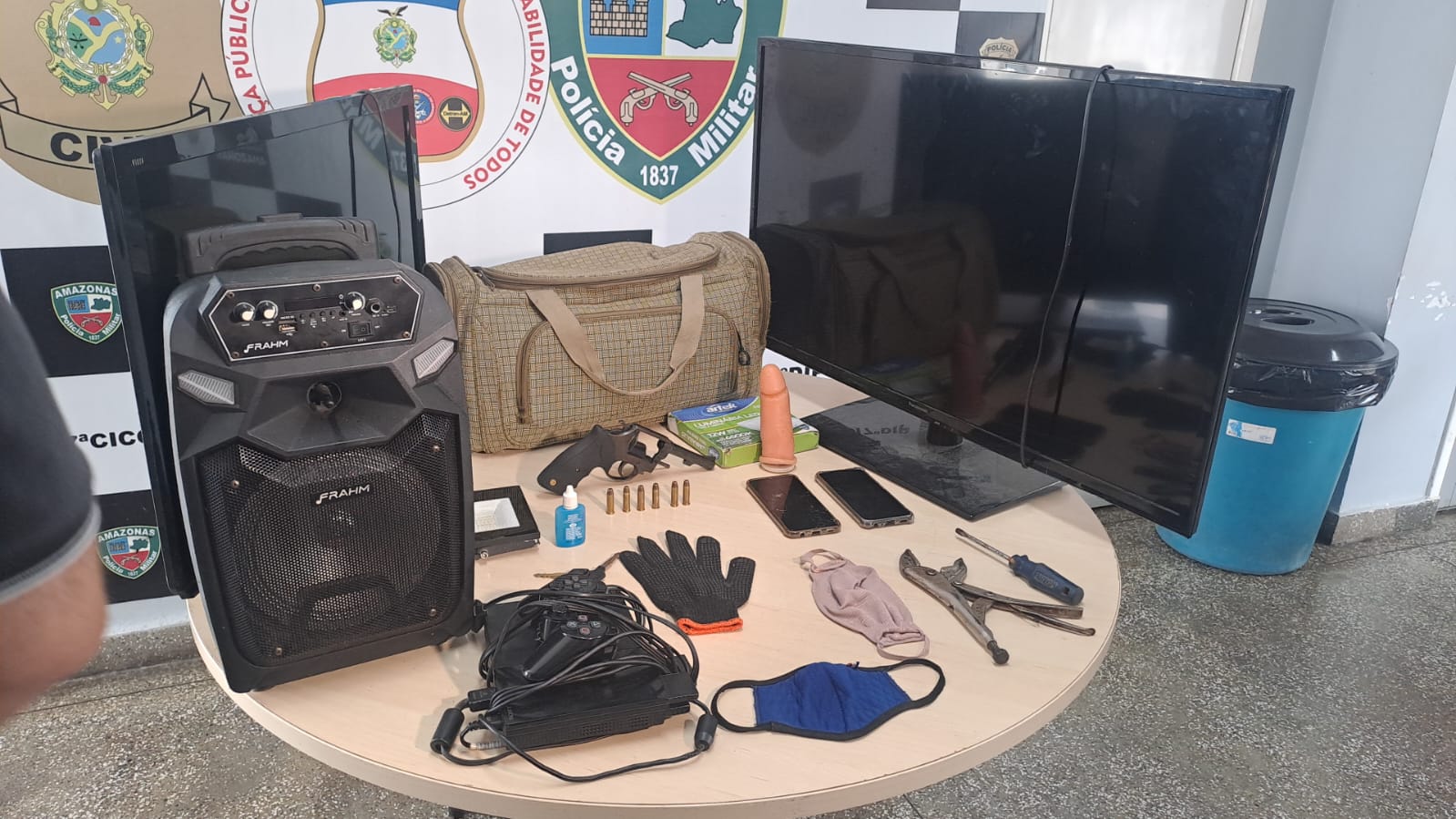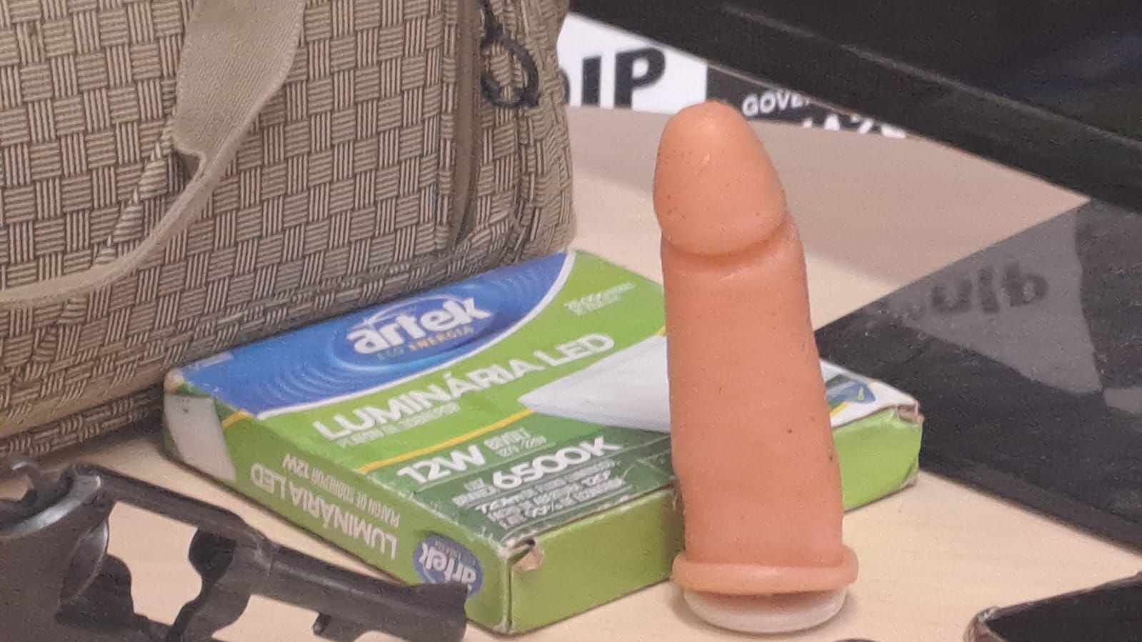 Ainda conforme o titular, um Playstation 2 com controle, uma caixa de som Frahm CM 350, dois aparelhos celulares Samsung, um revólver calibre 38, seis munições, uma Smart TV LCD e um pênis de borracha foram apreendidos.