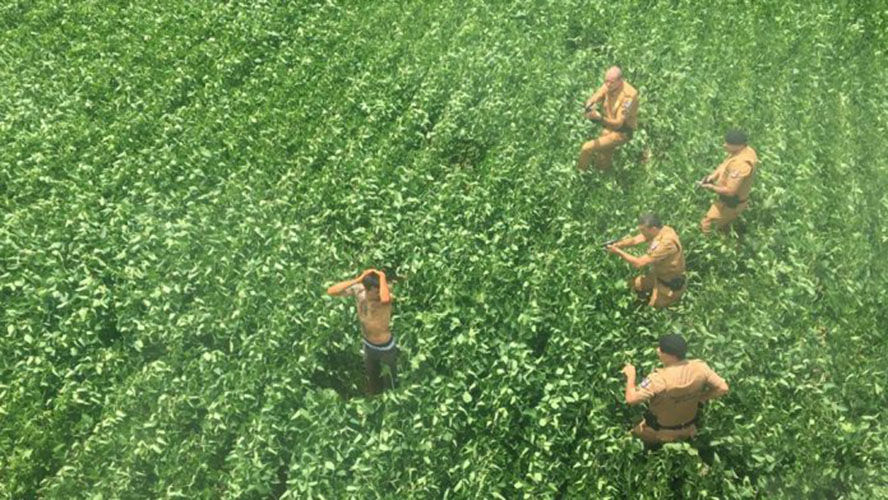 A PM informou que após ficar sabendo do caso, foi realizando as buscas pelo suspeito, o homem tentou fugir e se esconder em uma plantação.. Entretanto, os quatro policiais que entraram na vegetação e o helicóptero logo localizaram o suspeito e realizaram a prisão.