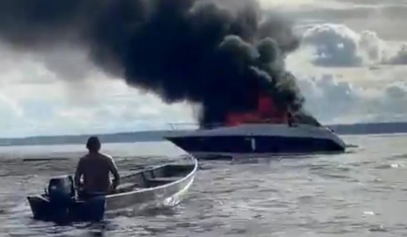 MANAUS – AM | Na tarde desta quarta-feira (30), uma lancha pegou fogo e explodiu no meio do Rio Negro, próximo a Marina do Davi, na Zona Oeste de Manaus.