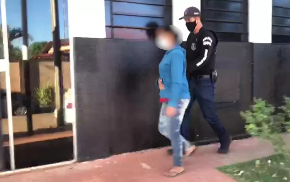 A ex-mulher foi levada por policiais civis. Ela não estava algemada prestou depoimento. Após quase 1 hora, ela deixou a delegacia em um carro.